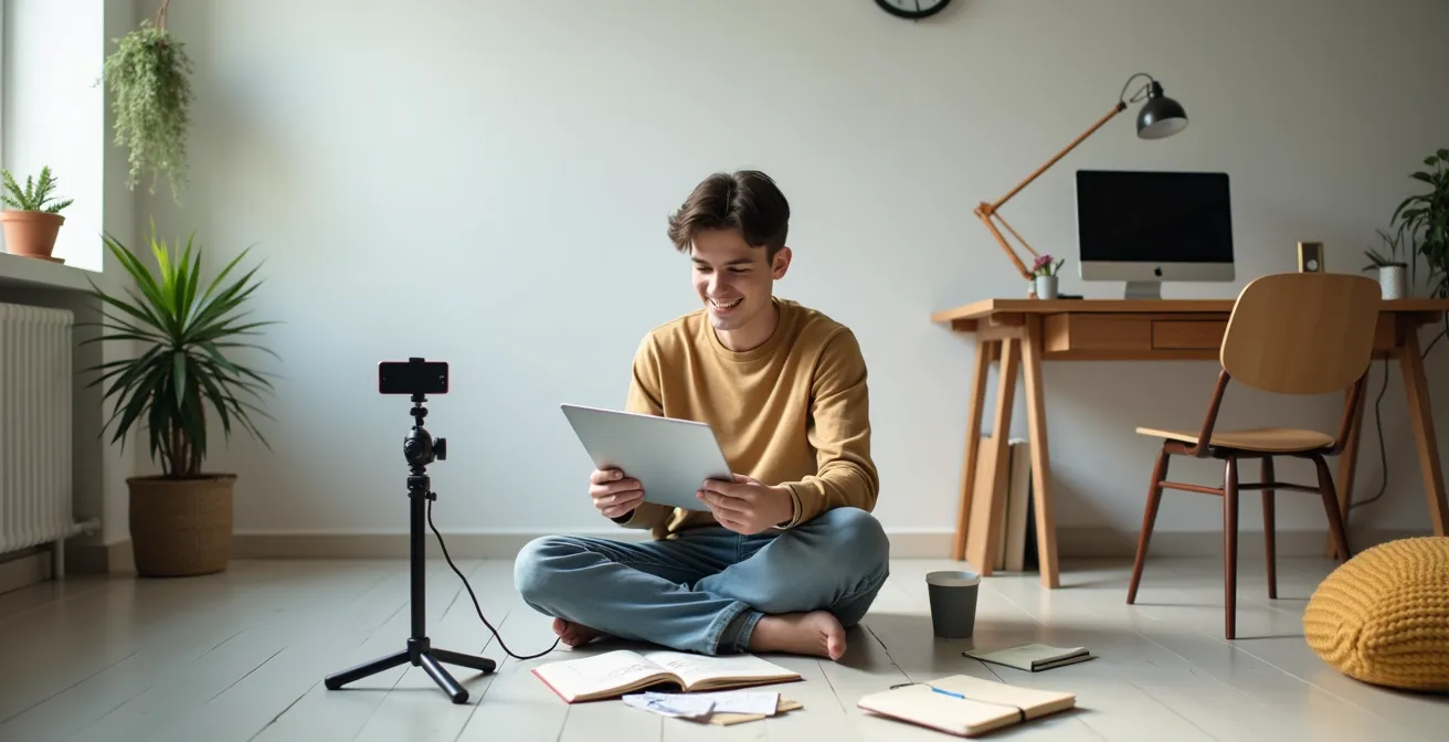 A fascinating study of Norwegian lifestyle YouTubers revealed that creators who adopted an “amateur style”—sitting casually on their bedroom floor, leaning against a wall, or using relaxed body language—fostered significantly higher levels of viewer trust and stronger parasocial relationships. This “anti-posture” approach signals that you are not putting on a performance. It communicates that the viewer is getting the “real you,” creating a sense of intimacy that polished, corporate-style presentations can never achieve. It’s the visual equivalent of speaking in a conversational tone.